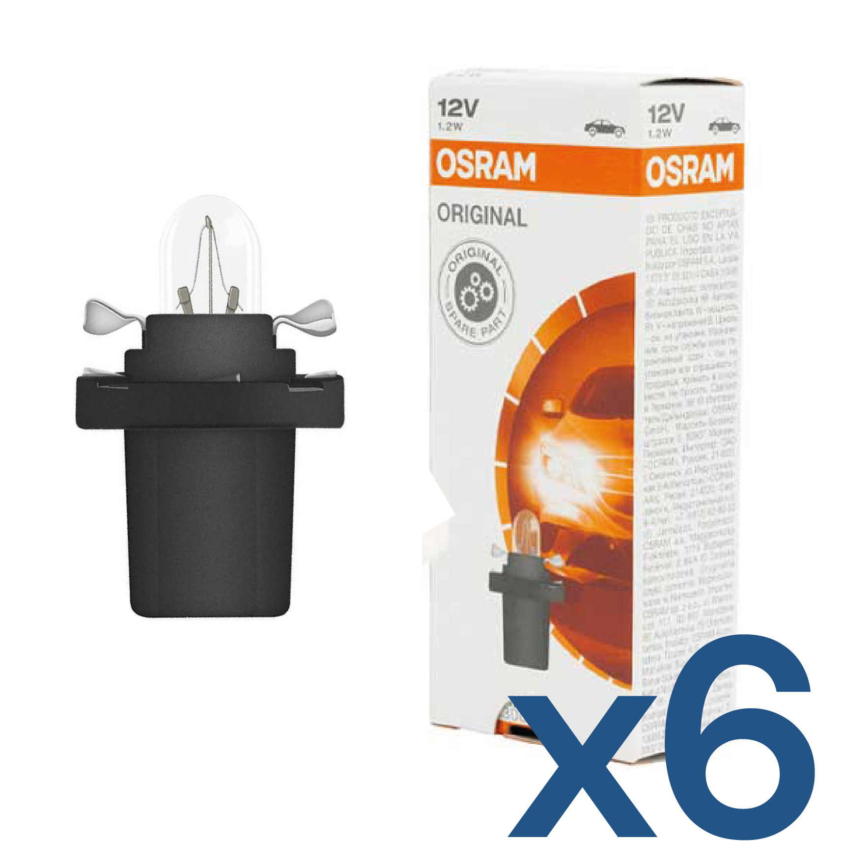 6 UNIDADES LAMPARA CASQUILLO DE VIDRIO 7003581 12V 1,2W B8,5D - CON PORTALAMPARA
