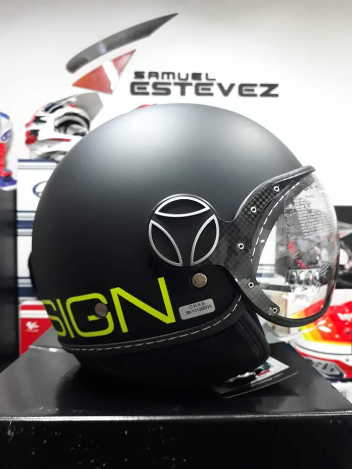 Visera esférica con tratamiento antirayaduras y absorción de radiación hasta 400 micras (absorbente UV) con borde de piel cosida y soportes de apoyo de carbono aeronáutico.