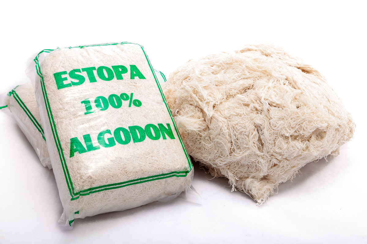 Estopa compuesta por hilos de algodón blanco. Debido a su gran absorción en agua, aceites y solventes es ideal para la limpieza fina y media.